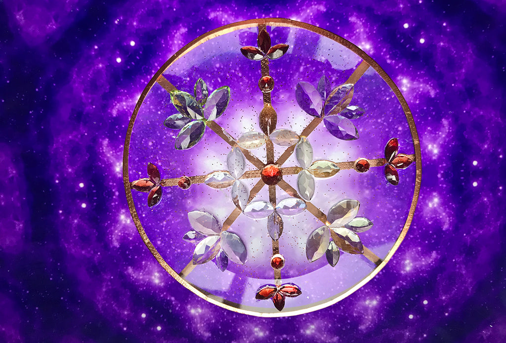 It is made of specialized quartz glass, cut to reflect the light in such a way as to amplify the power of the cosmic energies.